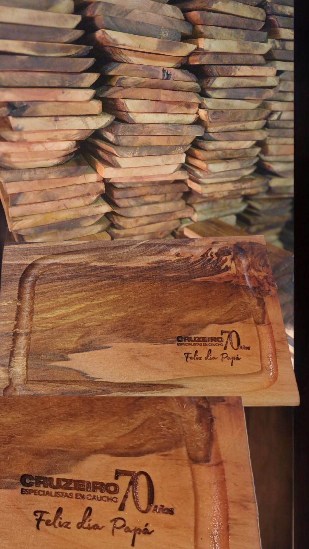 Somos productores de tablas de asado, articulos de cocina, accesorios de quinchos y bares todo en madera nativa reciclada, «alta producción»